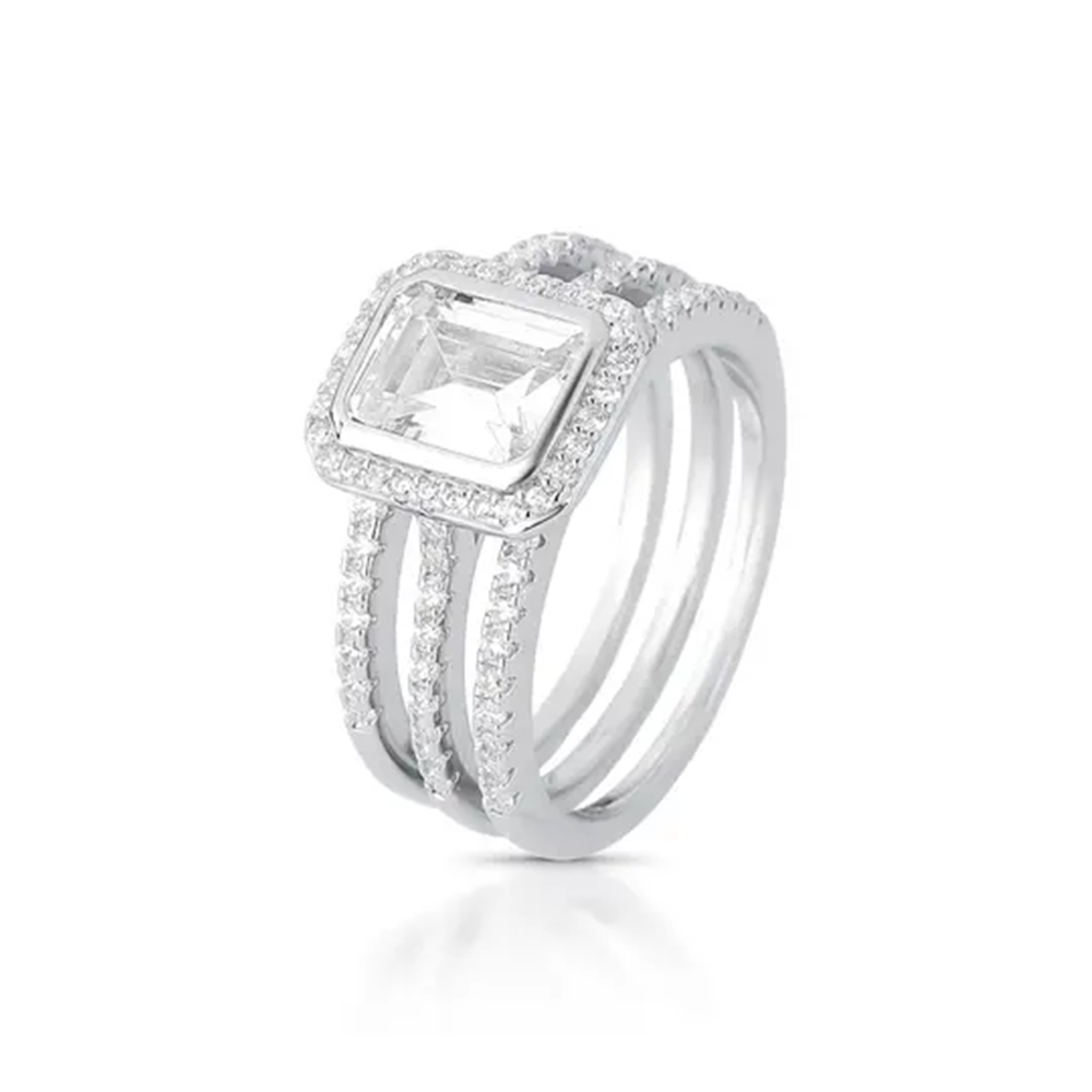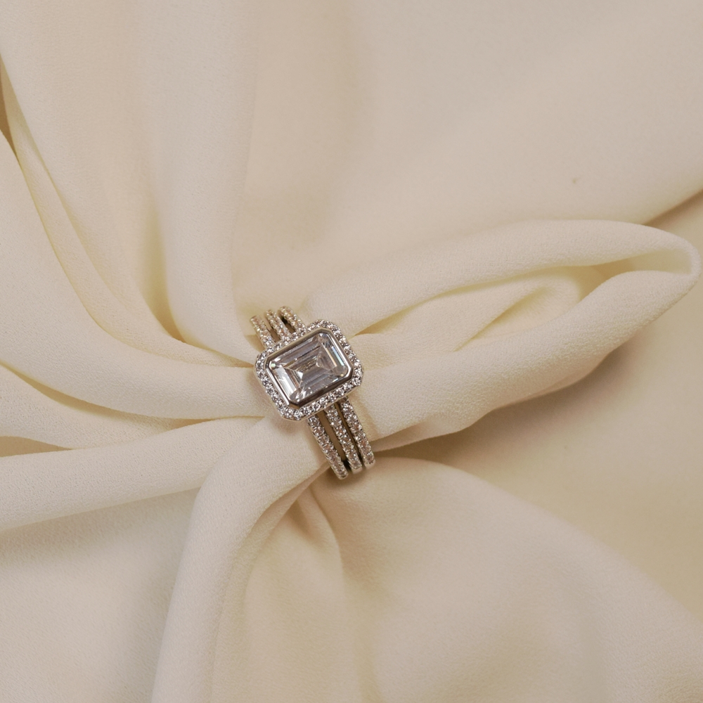Kit composto por 3 anéis, sendo 2 modelos meia aliança cravejados com zircônias incolores e 1 anel solitário para complementar o conjunto. O banho em ródio garante brilho intenso e durabilidade, resultando em peças elegantes e versáteis. Use juntos para um visual moderno e sofisticado ou separados para composições mais sutis. Perfeito para combinar com outras semijoias em ródio e criar um mix refinado.