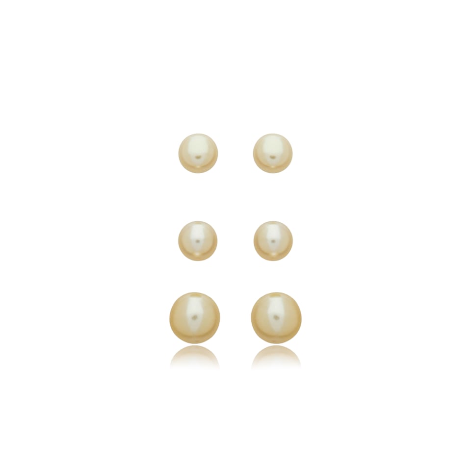 Kit com 3 pares de brincos de pérolas no banho de ouro.