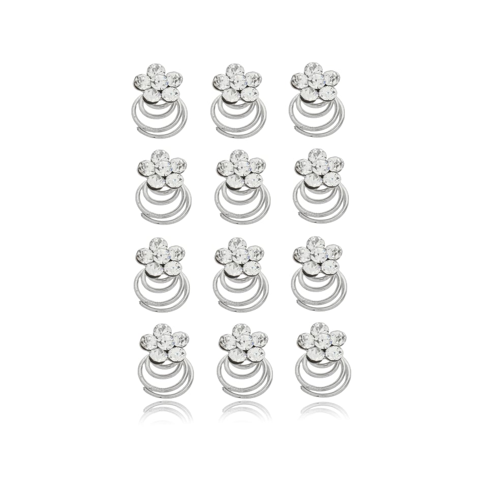 Kit com 12 tereres de mola para cabelo com design de florzinha com aplicação de strass.