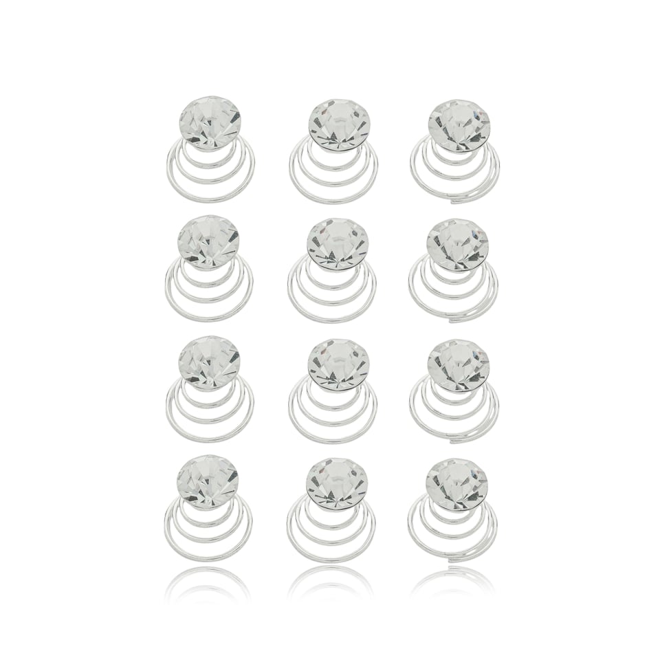 Kit com 12 tereres de mola para cabelo com ponto de luz de strass.