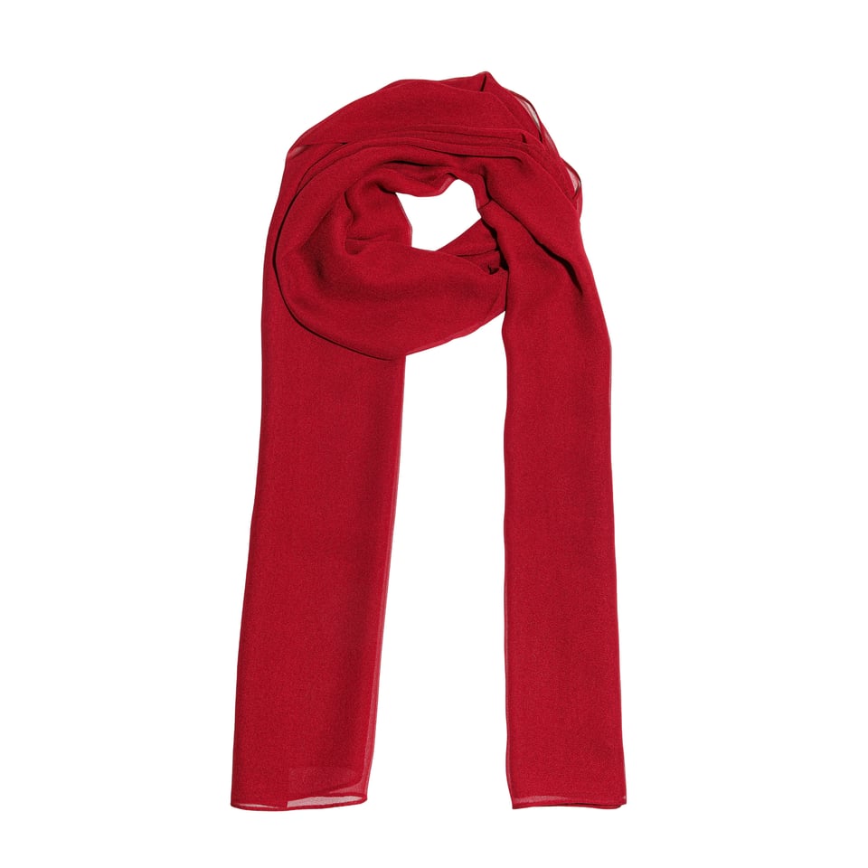 Lenço tipo echarpe de tecido 100% poliéster na cor vermelho escuro.