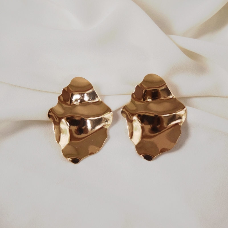Maxi brinco chapa ondulada banho de ouro, com design moderno e marcante que valoriza o movimento e o brilho do metal. A superfície ondulada cria um efeito sofisticado e elegante, destacando a peça com leveza e estilo.