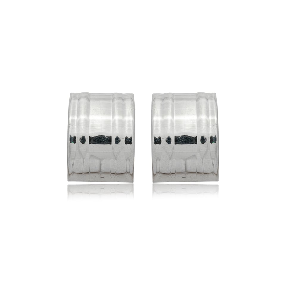 Maxi brinco banho de ródio com design curvado no metal liso polido.
