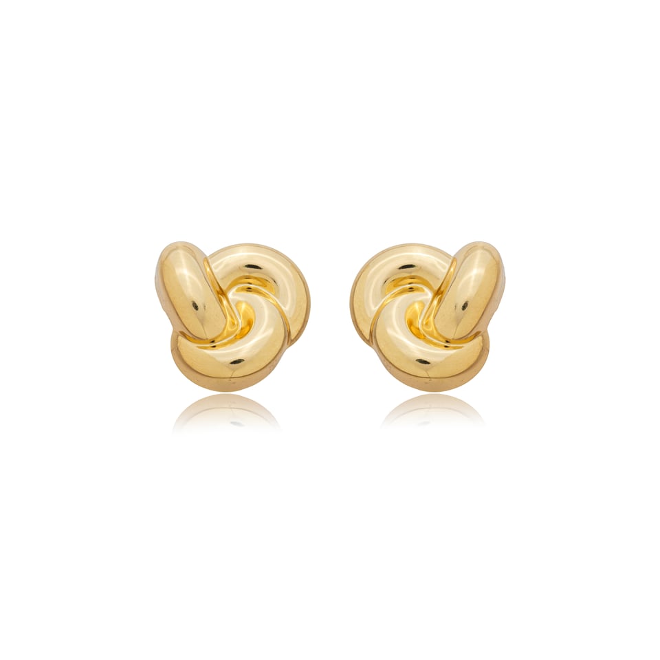 Maxi brinco banho de ouro com design de elos no metal liso polido.
