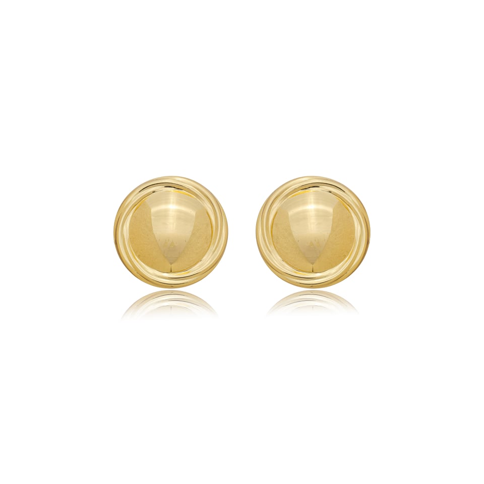 Maxi brinco banho de ouro de design redondo com detalhe no metal trançado.