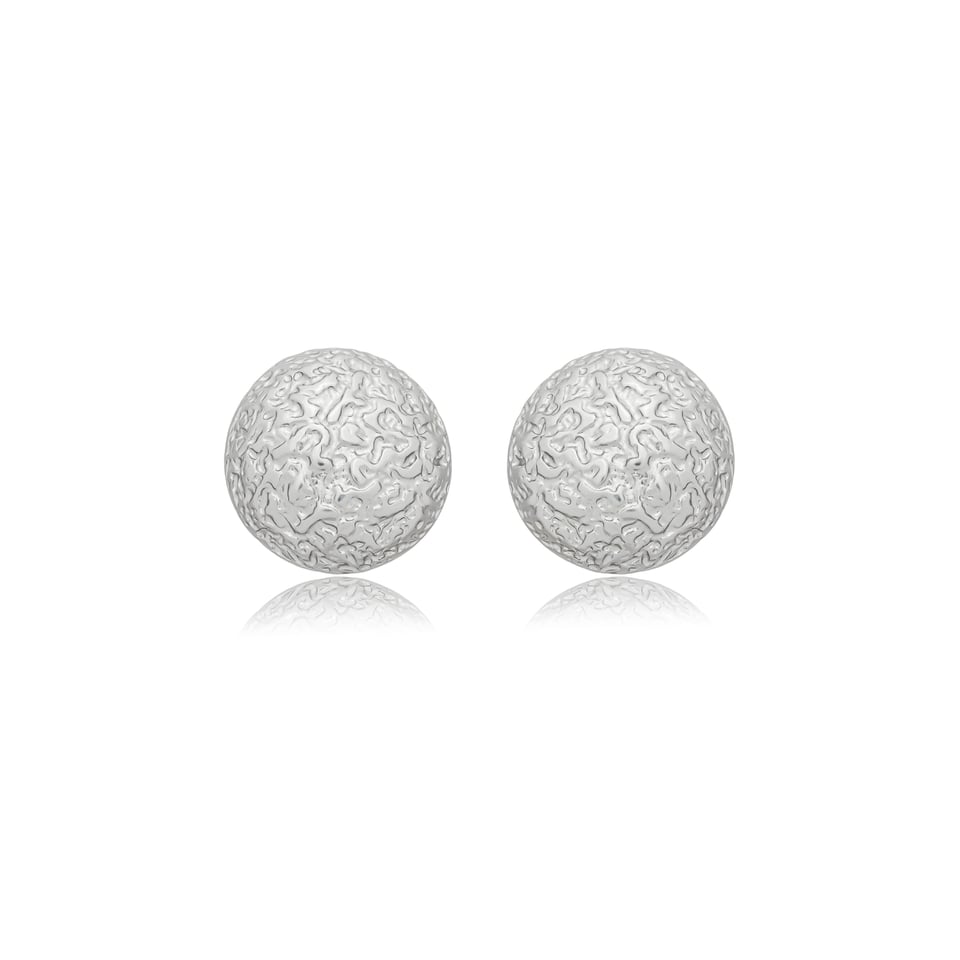 Maxi brinco banho de ródio fosco com design redondo no metal texturizado.