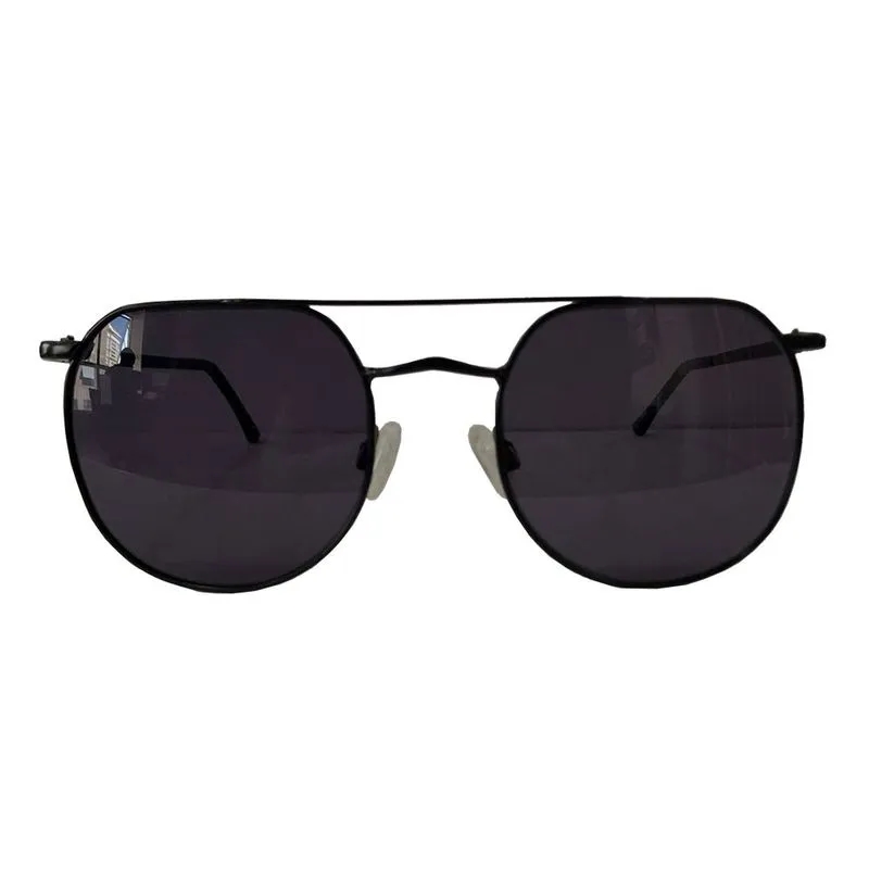 Óculos de sol fabricado no Brasil em metal de alta qualidade, com design redondo na cor preto e detalhe de duas pontes, trazendo um visual moderno e sofisticado.