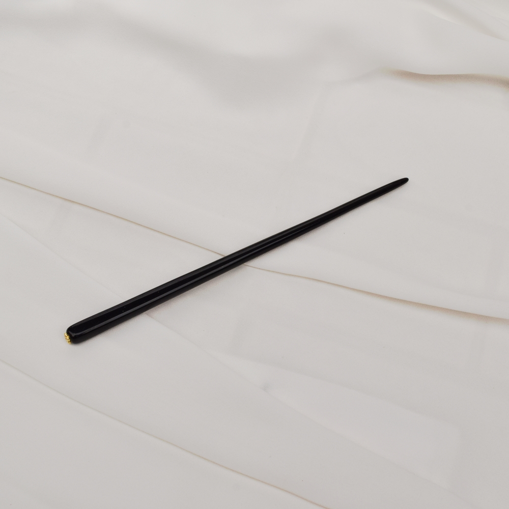 Palito de acrílico resistente na cor preto com acabamento feito a mão para não danificar e nem marcar o cabelo.