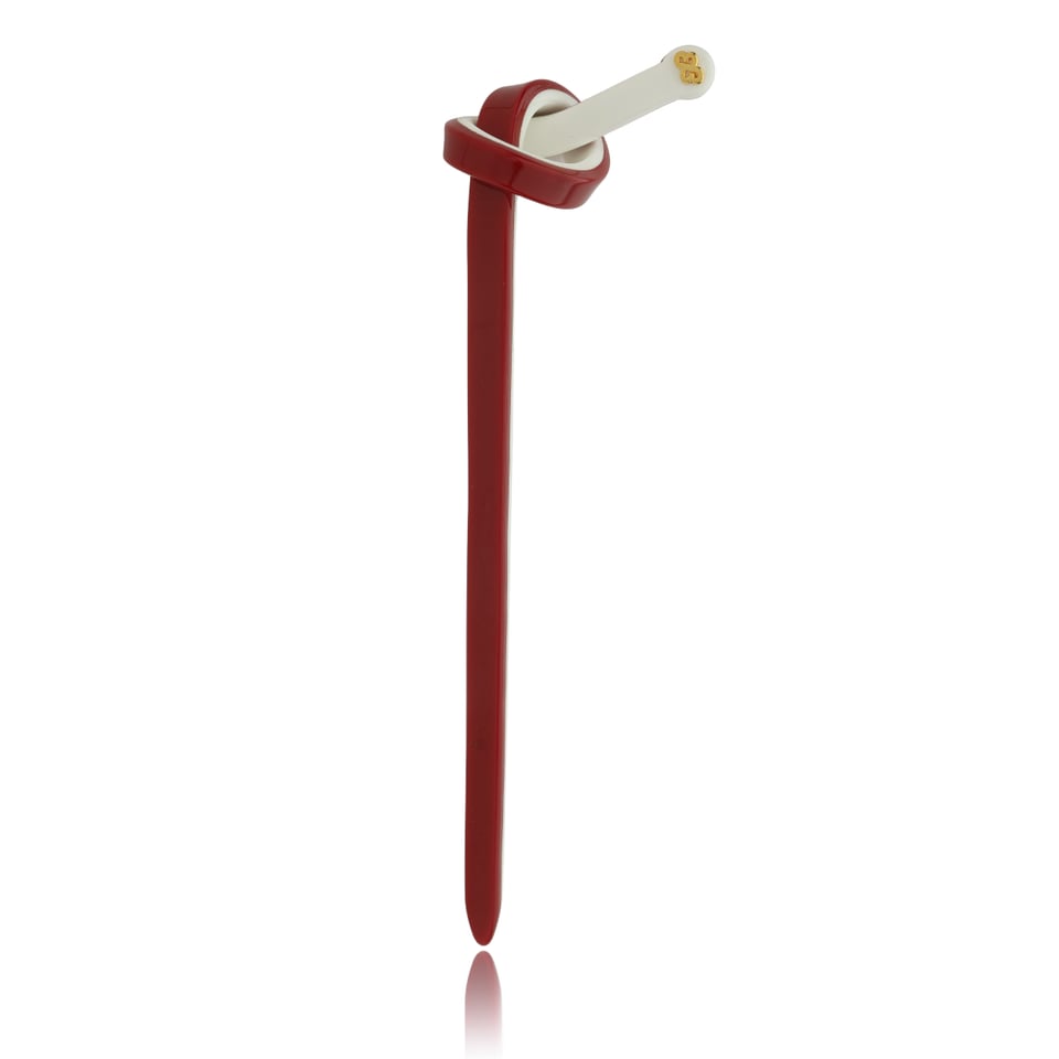 Palito de acrílico resistente com design de nó nas cores vermelho com creme.