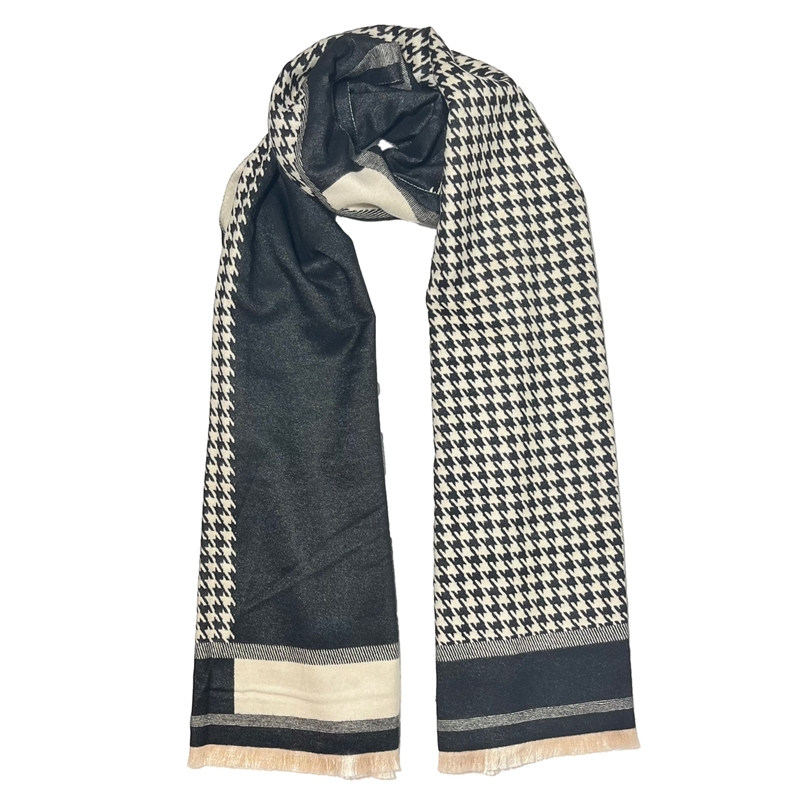 Pashimina de lã acrílica com estampa pied poule nas cores preto e bege,