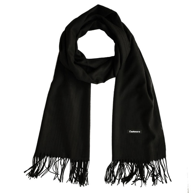 Pashimina em tecido de algodão na cor preto com franjas em fios.
