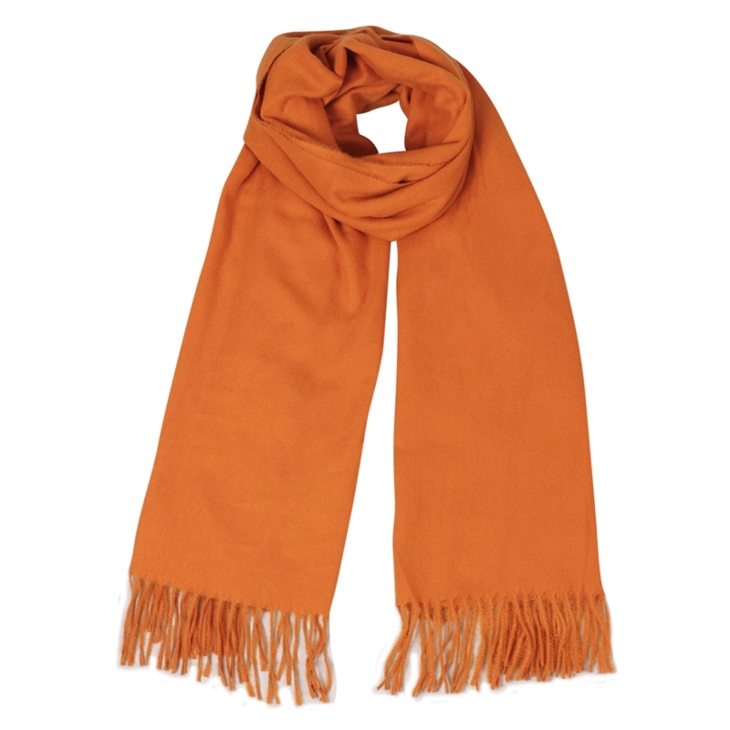 Pashimina de lã acrílica na cor terracota com franjas em fios.