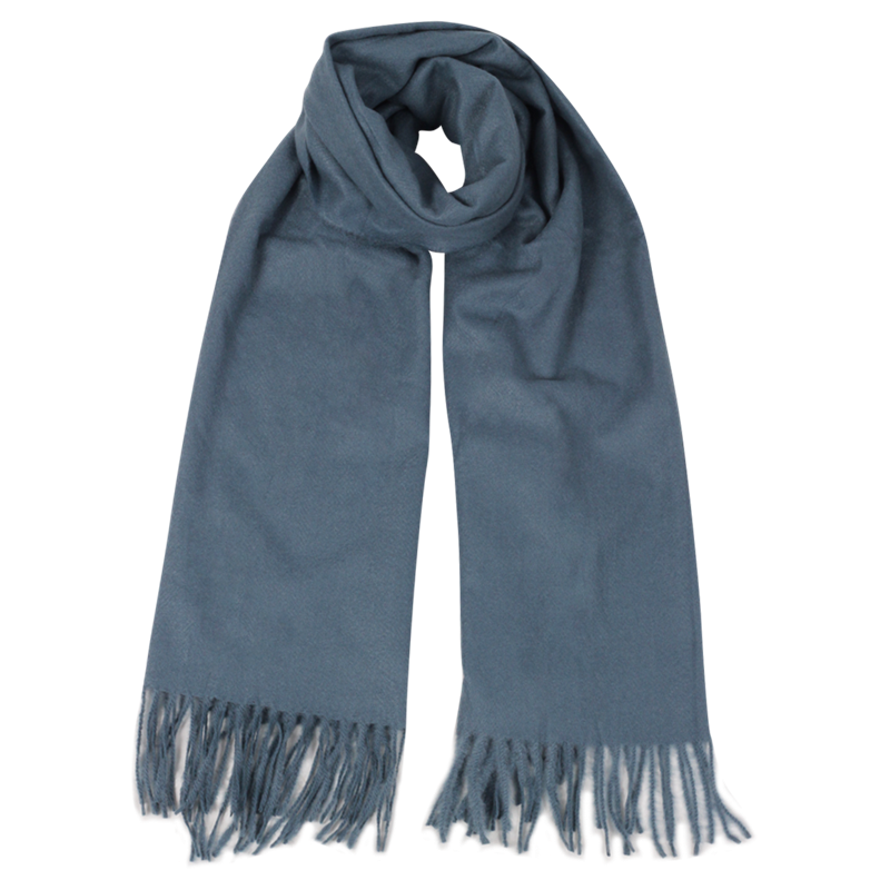 Pashimina de lã acrílica na cor azul com franjas em fios.