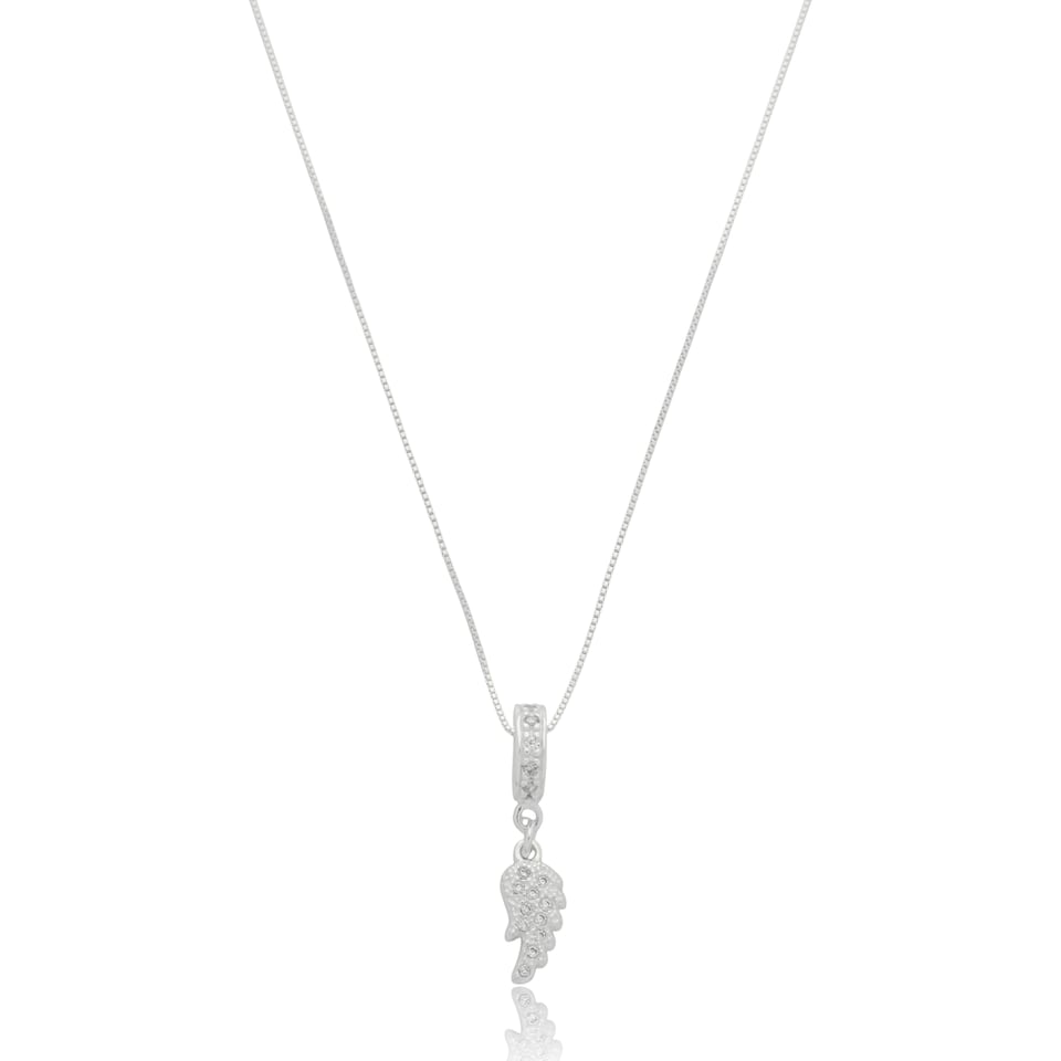 Colar corrente veneziana de prata 925 com berloque no formato de asa com micro zircônias cravejadas na cor branco (cristal).