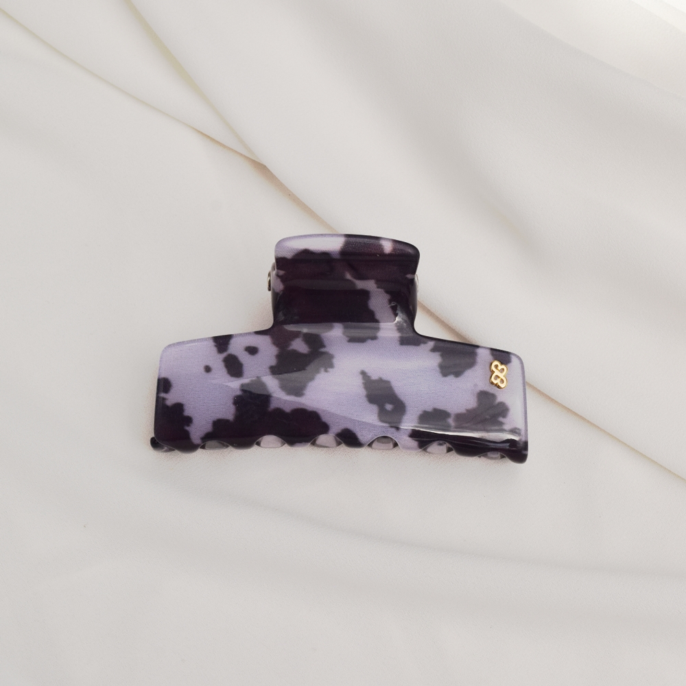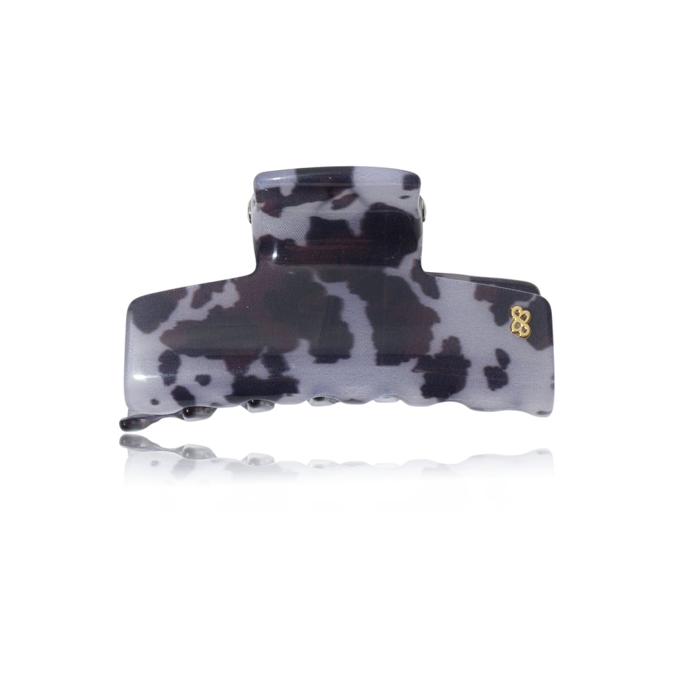 A Piranha Bianca Accessory é feita artesanalmente em acrílico premium com estampa animal print de vaca, trazendo um toque moderno e sofisticado ao visual.
