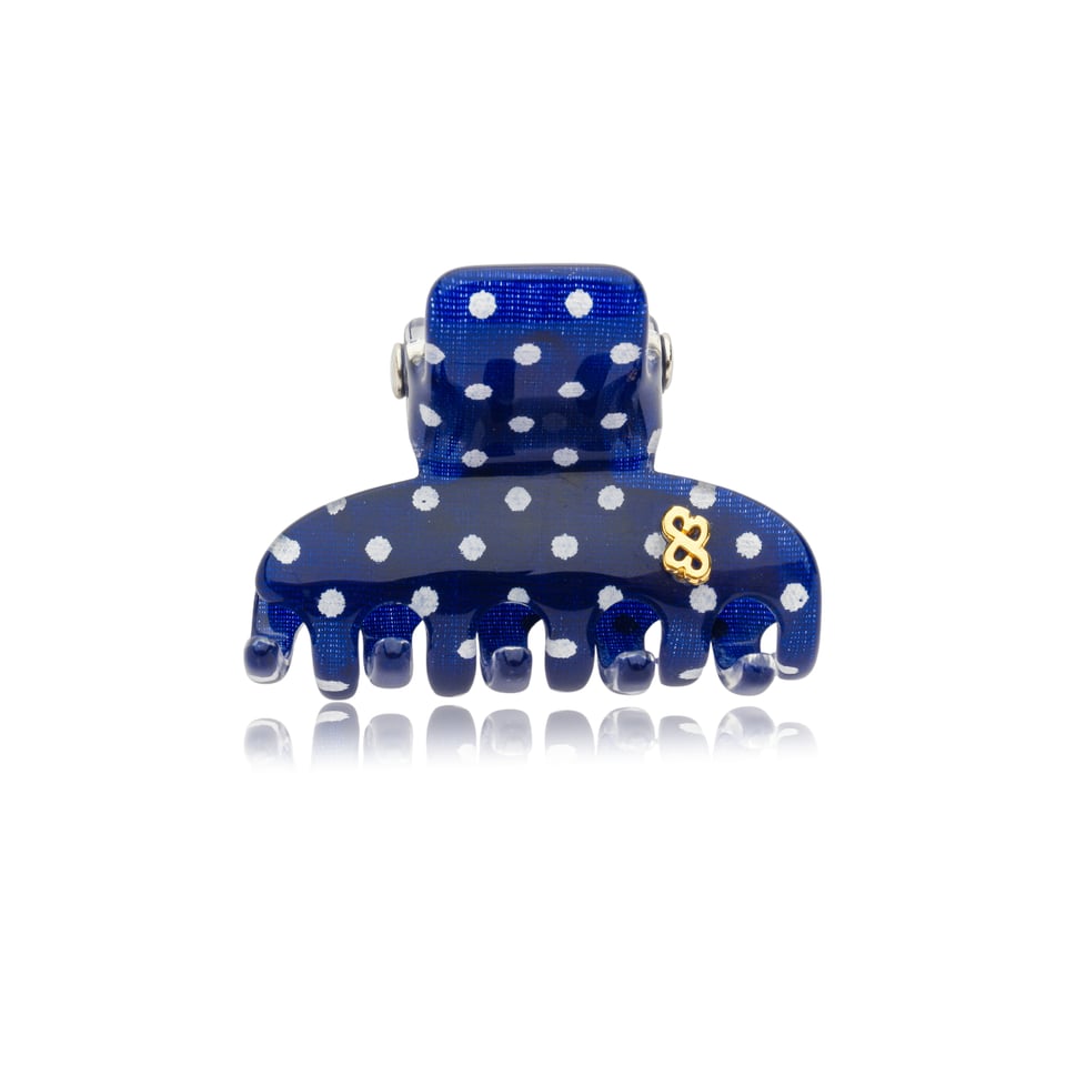 Piranha com material de acrílico de alta qualidade na cor azul com bolinha na cor branca, possui mola aço em inox com formato em B (patenteado).
