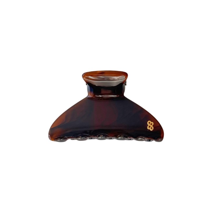 Piranha de cabelo em acrílico de alta qualidade na cor marrom, com mola em formato B em aço inox e monograma banhado a ouro 24k.