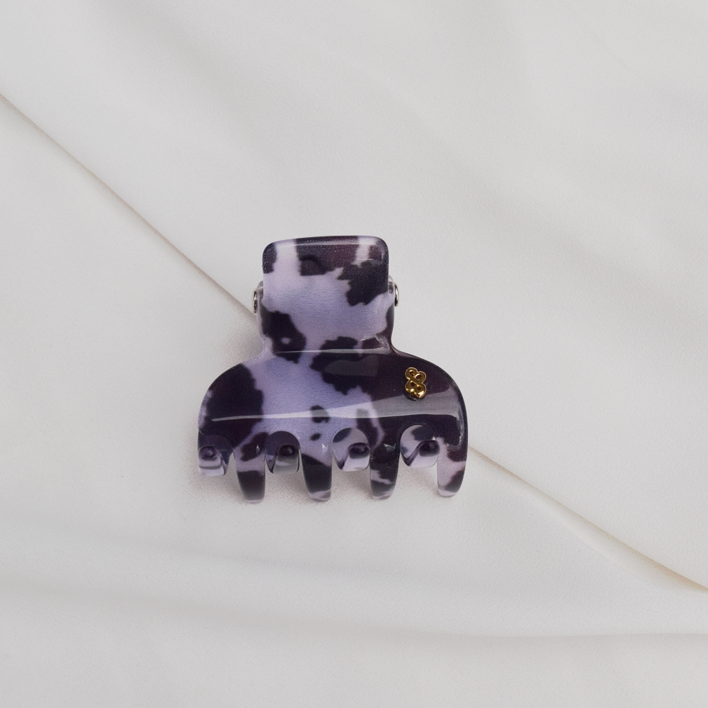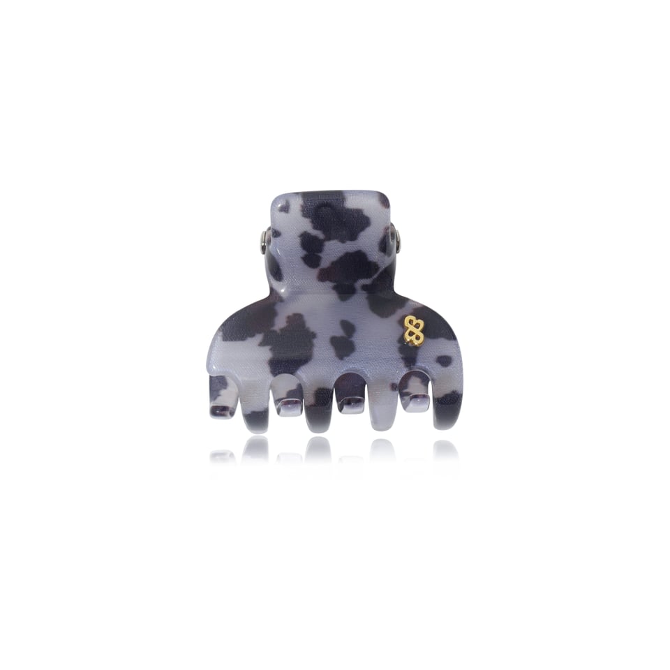 A Piranha Bianca Accessory é feita artesanalmente em acrílico premium com estampa animal print de vaca, trazendo um toque moderno e sofisticado ao visual.