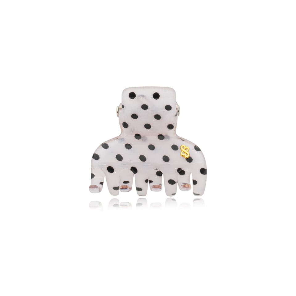 Piranha com material de acrílico de alta qualidade na cor branco com bolinha na cor preto, possui mola aço em inox com formato em B (patenteado).