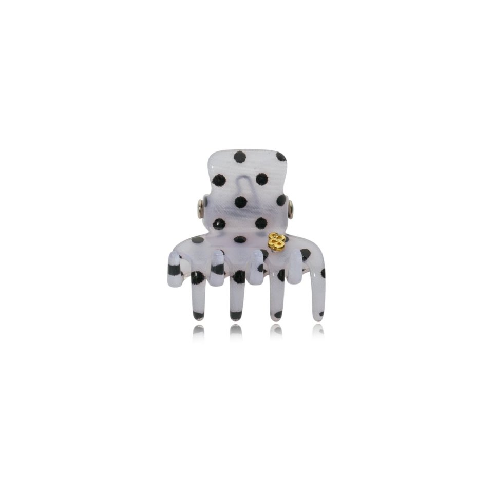 Piranha com material de acrílico de alta qualidade na cor branco com bolinha na cor preto, possui mola aço em inox com formato em B (patenteado).