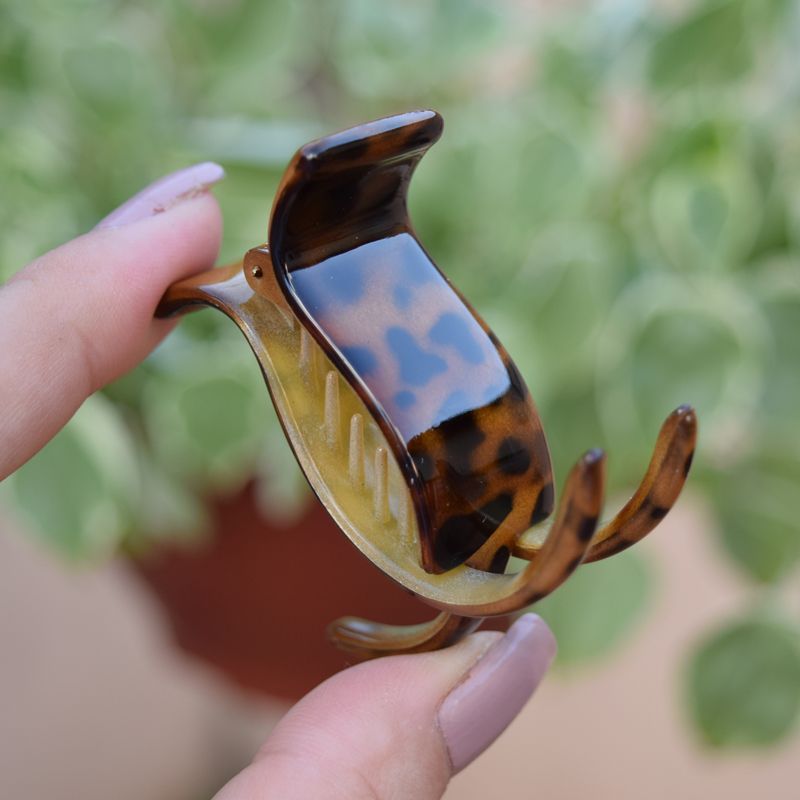 Piranha de cabelo de acetato curvado de alta qualidade na estampa animal print.