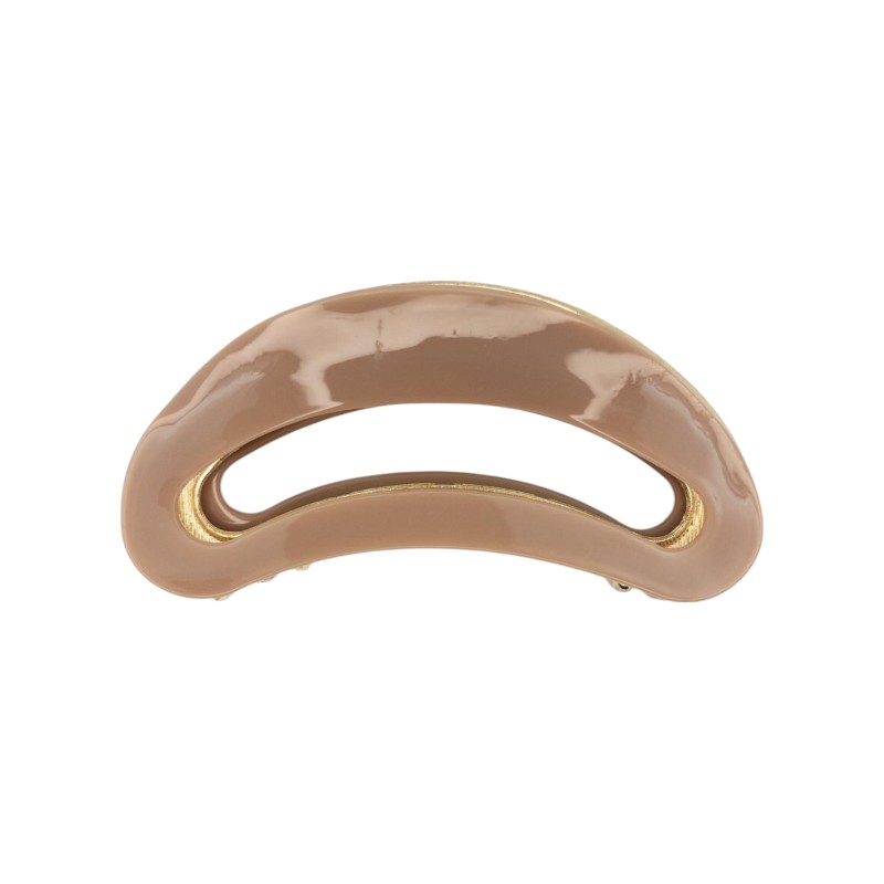Piranha de cabelo grande metal dourado com acetato na cor nude.