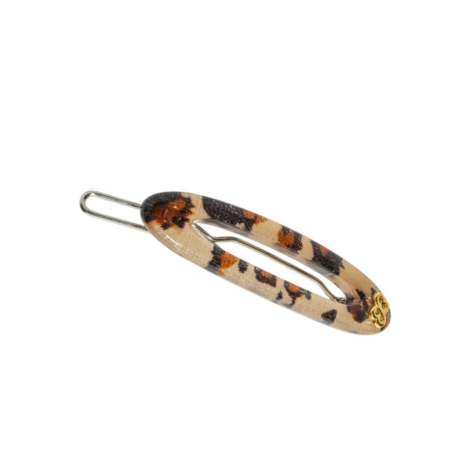 Presilha pequena de acrílico de alta qualidade, vazada, na estampa animal print.
