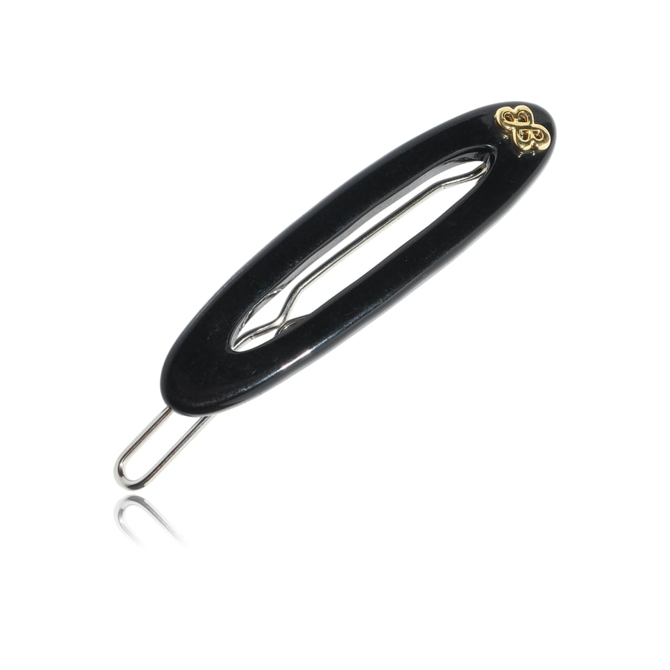 Presilha pequena de acrílico de alta qualidade, vazada, na cor preta.