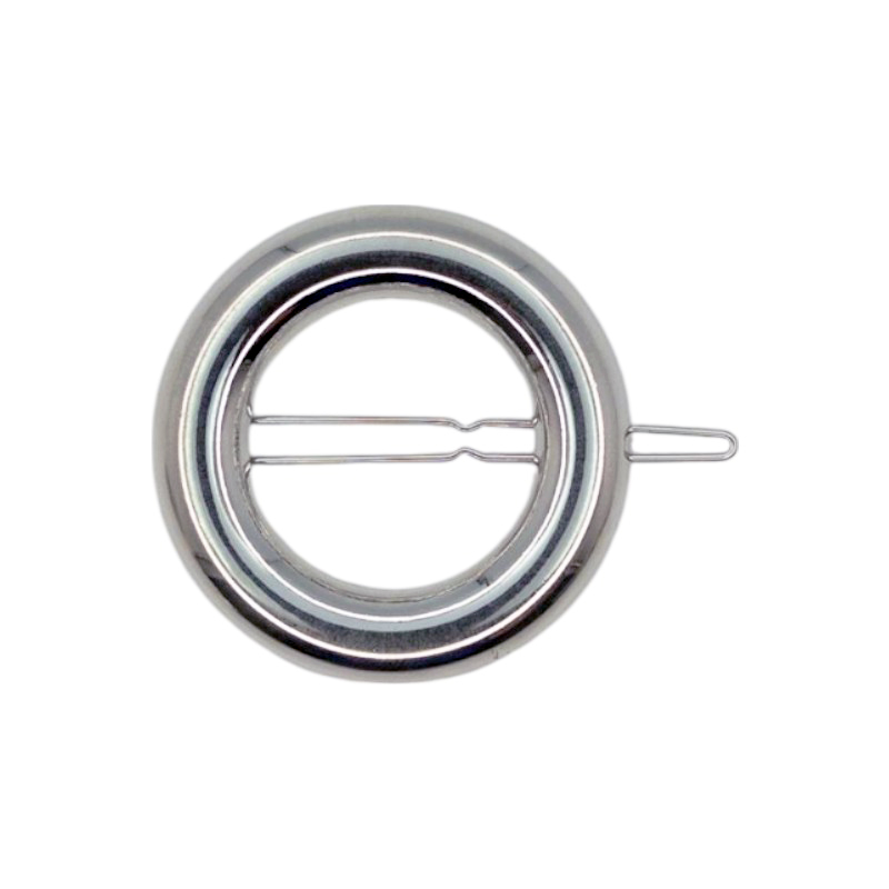 Presilha metal banho prateado com design circular no metal liso polido vazado.