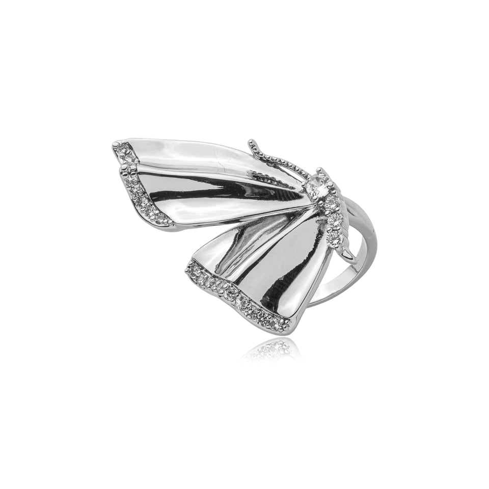 Anel banho de ródio com cravação de micro zircônias na cor branco (cristal).