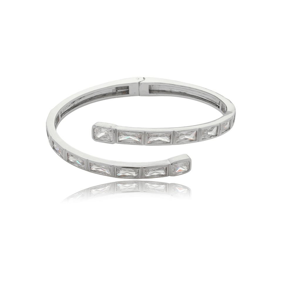 Bracelete articulado banho de ródio com cravação de cristais na cor branco (cristal).