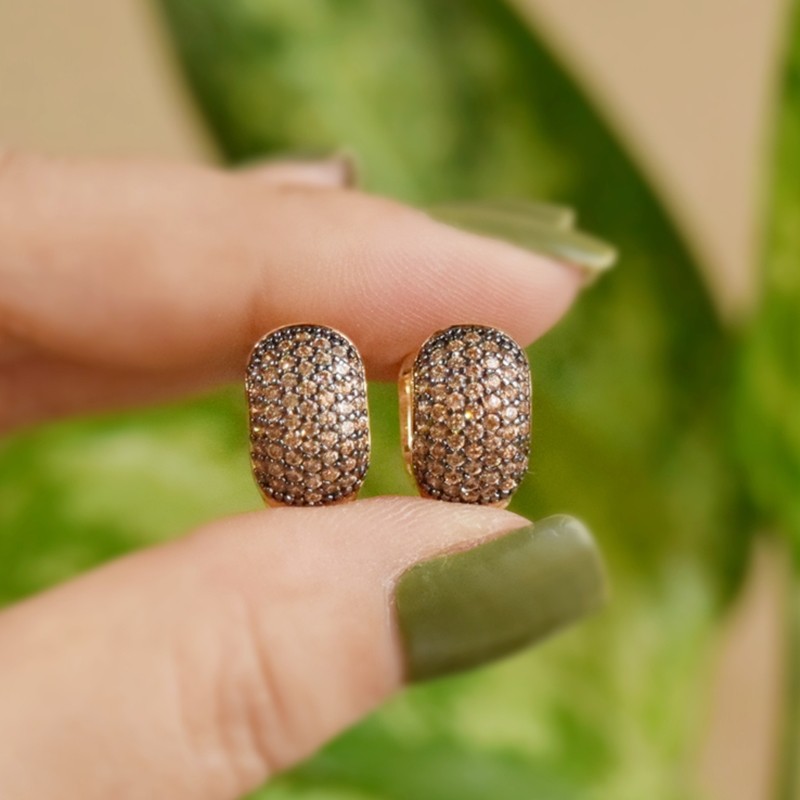 Brinco argolinha banho de ouro com micro zircônias cravejadas na cor topázio.