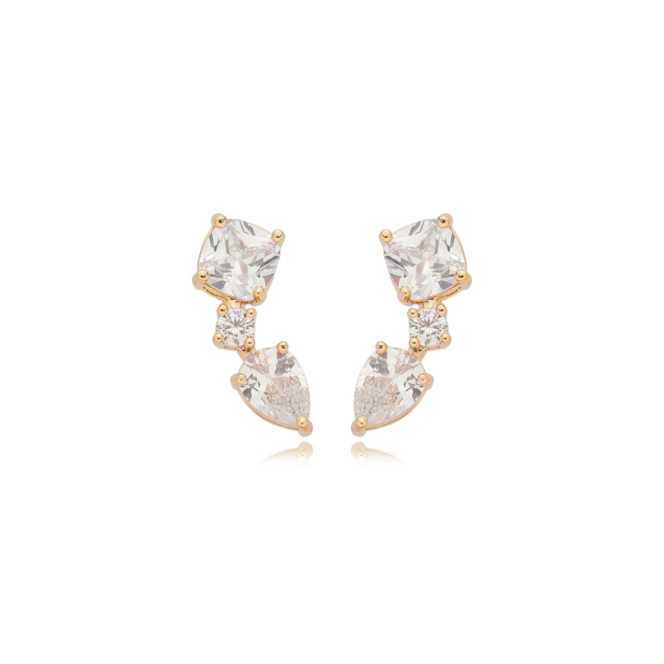 Brinco ear cuff banho de ouro com cravação de zircônias na cor branco (cristal).