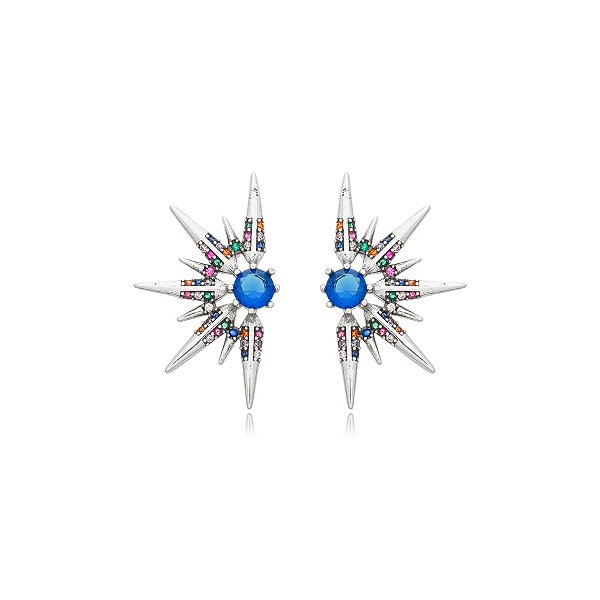 Brinco banho de ródio com cravação de micro zircônias coloridas.