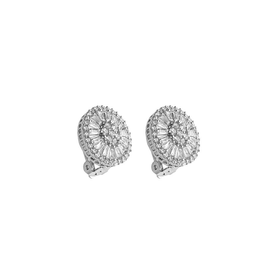 Brinco pressão banho de ródio com cravação de zircônias na cor branco (cristal).