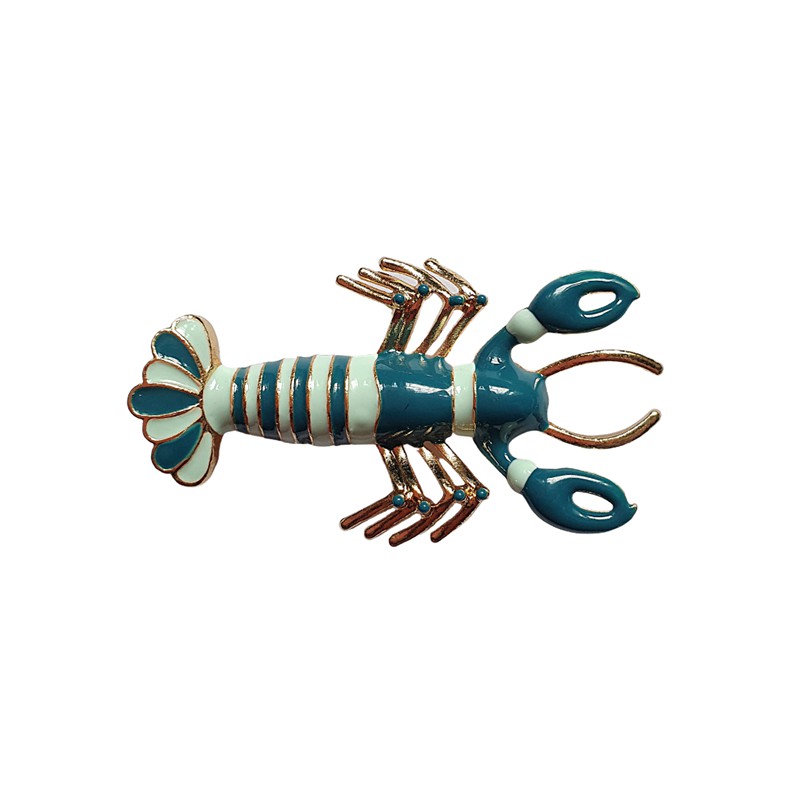Broche magnético banho dourado com metal esmaltado em tons de azuis.