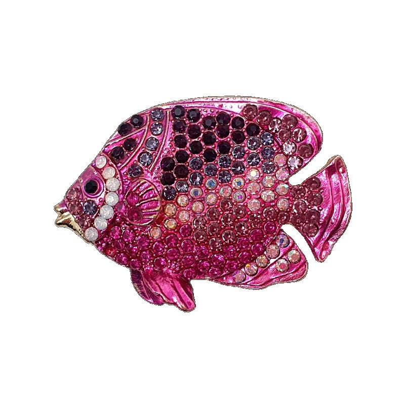 Broche magnético banho dourado com cravação de cristais em tons de rosa.