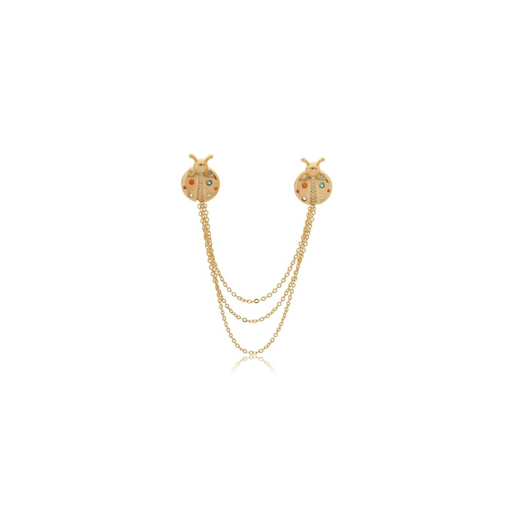 Broche banho de ouro no formato de joaninhas com aplicação de cristais coloridos.