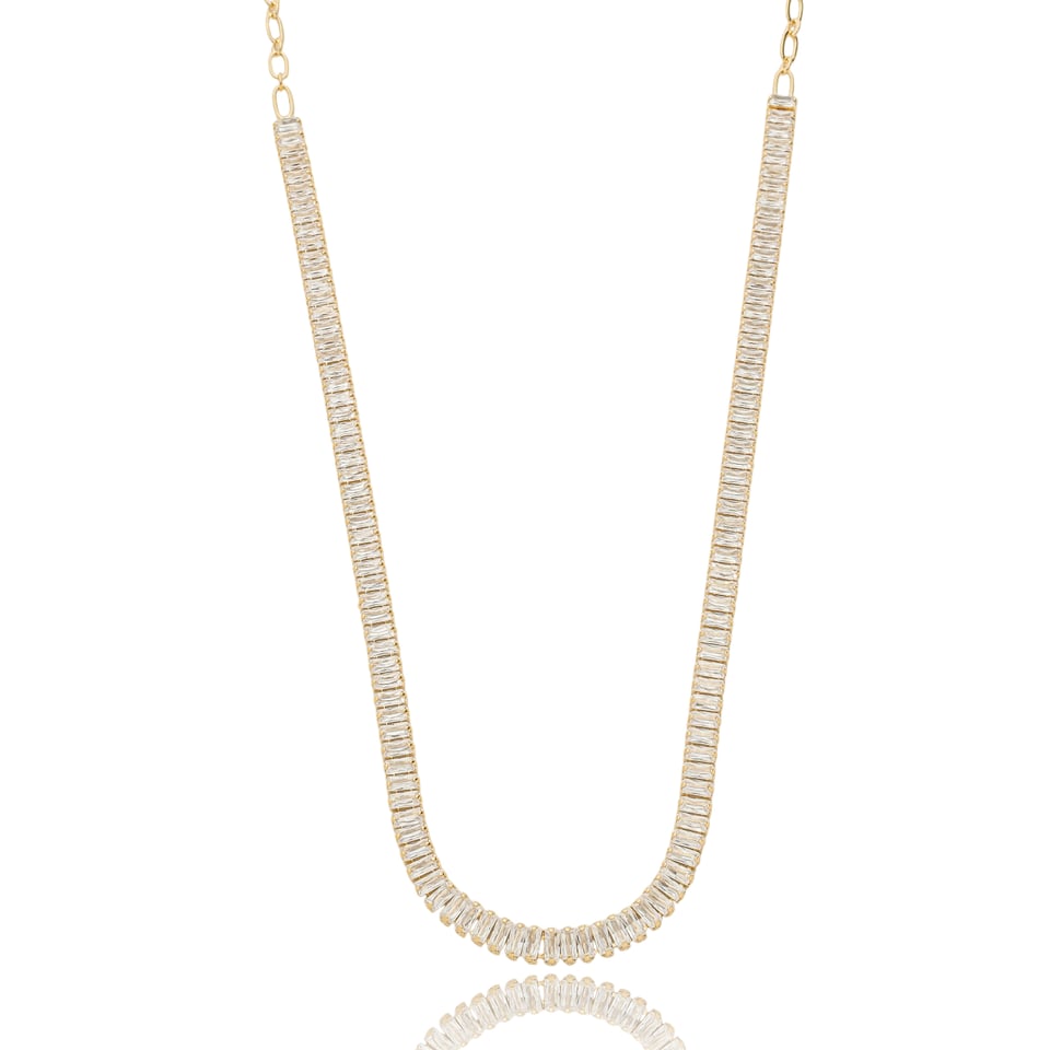Colar choker banho de ouro com zircônias baguetes cravejadas na cor branco (cristal).