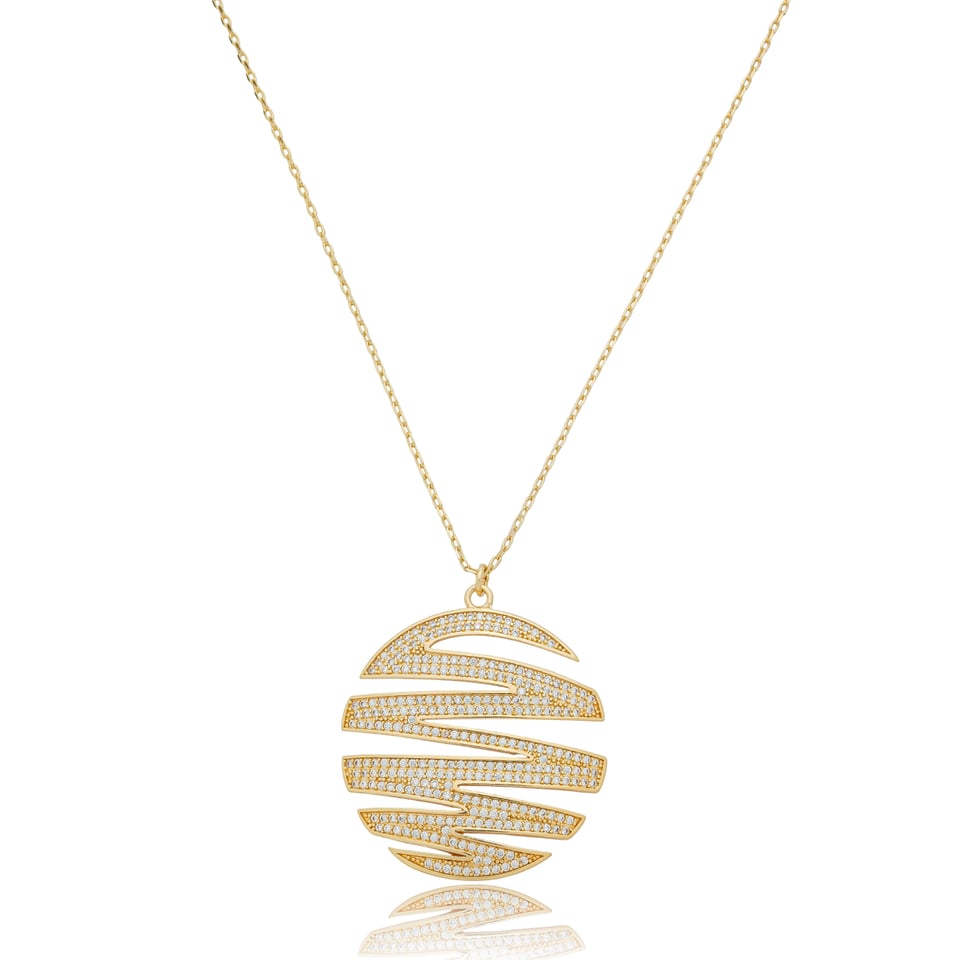Colar corrente banho de ouro com pingente redondo com micro zircônias cravejadas na cor branco (cristal).