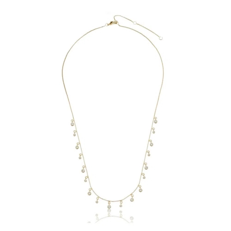 Colar curto corrente veneziana banho de ouro com pingentes de zircônias na cor branco (cristal).