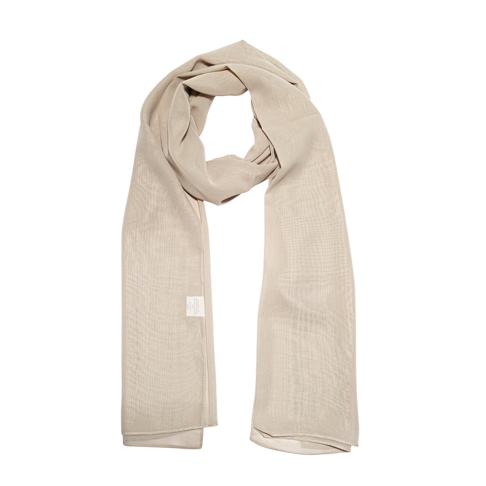 Lenço tipo echarpe de tecido 100% poliéster na cor nude.