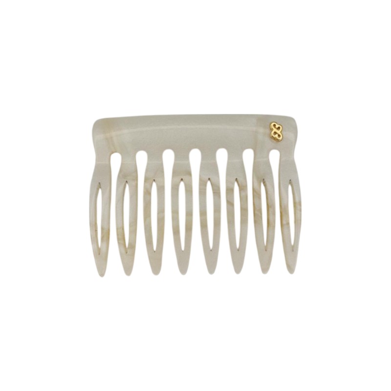 Pente em acrílico resistente na cor marfim imitando madrepérola.