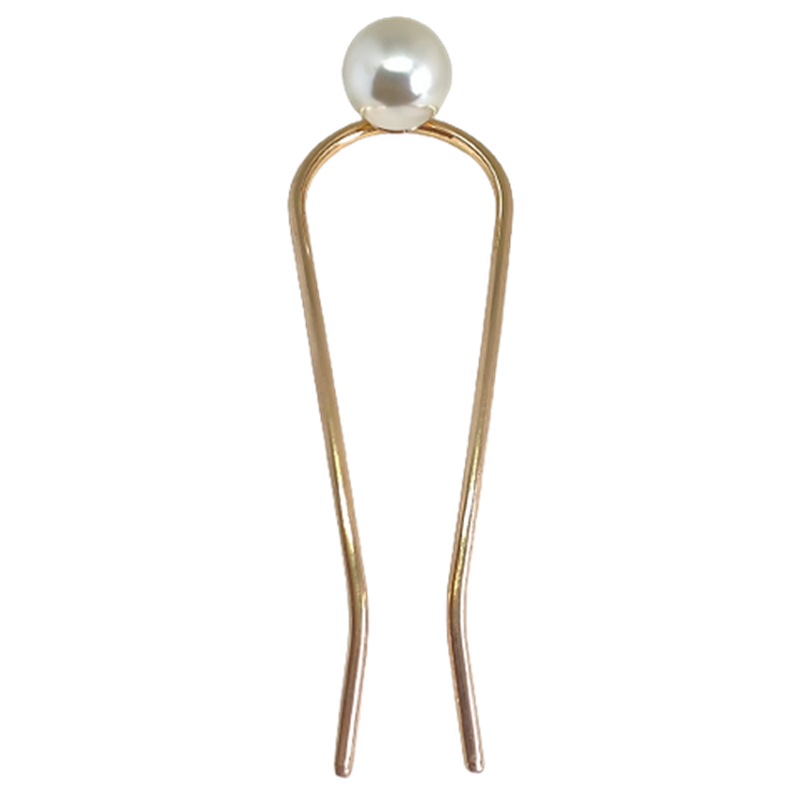 Pente para coque de metal na cor dourado com aplicação de pérola.