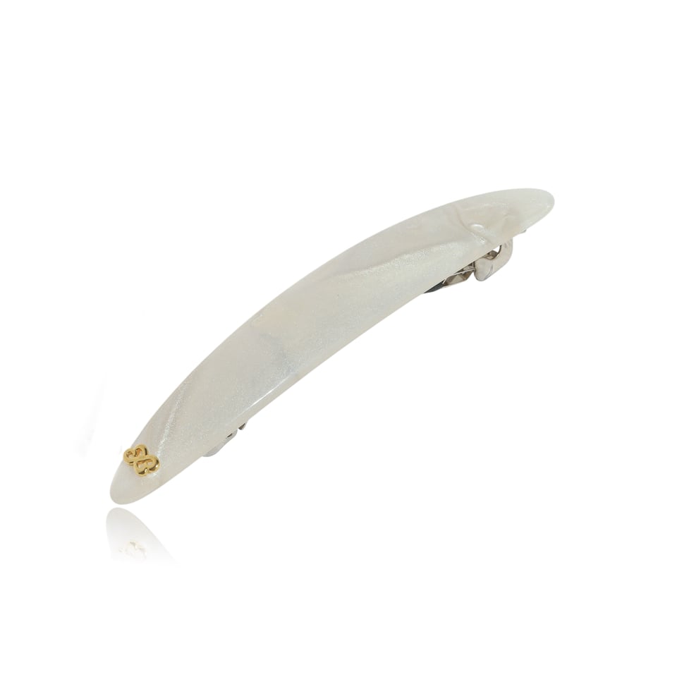 Presilha média em acrílico na cor marfim imitando madrepérola de alta qualidade e polida a mão.