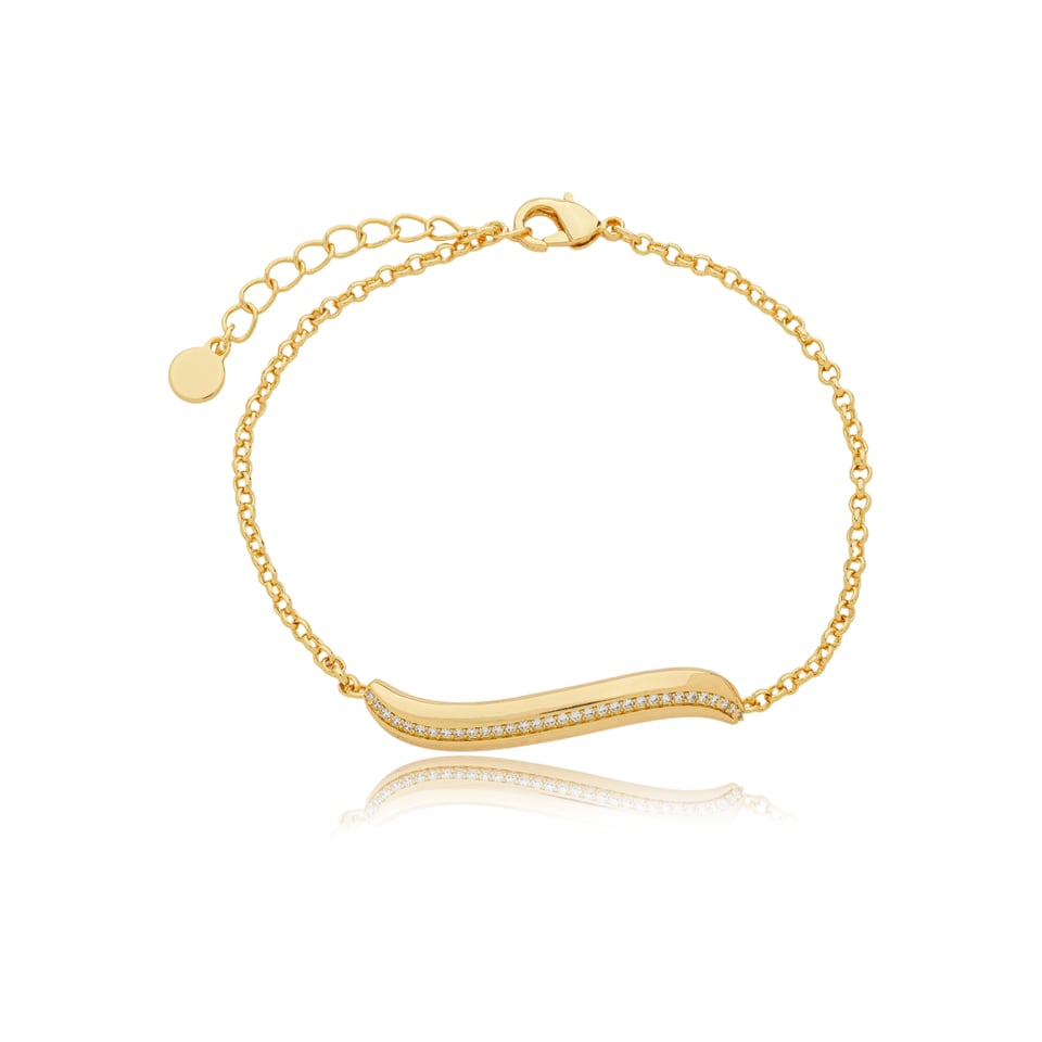 Pulseira banho de ouro com pingente curvado com cravação de micro zircônias na cor branco (cristal).