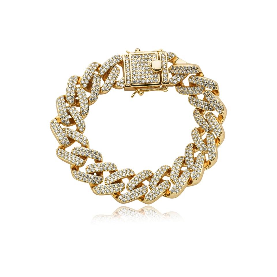 Pulseira corrente no banho de ouro com micro zircônias cravejadas na cor branco (cristal).