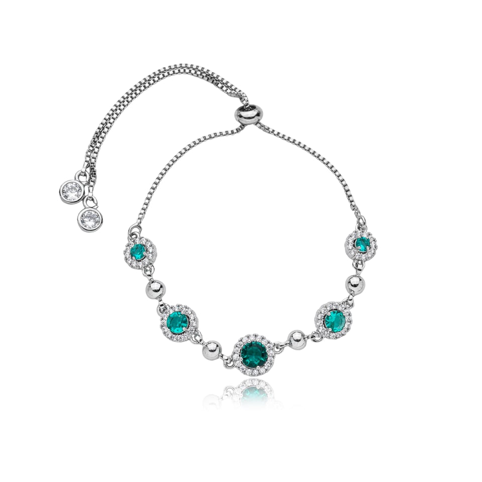 Pulseira gravatinha banho de ródio com cravação de micro zircônias na cor branco (cristal) e cristal redondo na cor verde, e acabamento de cristais nas pontas da pulseira.