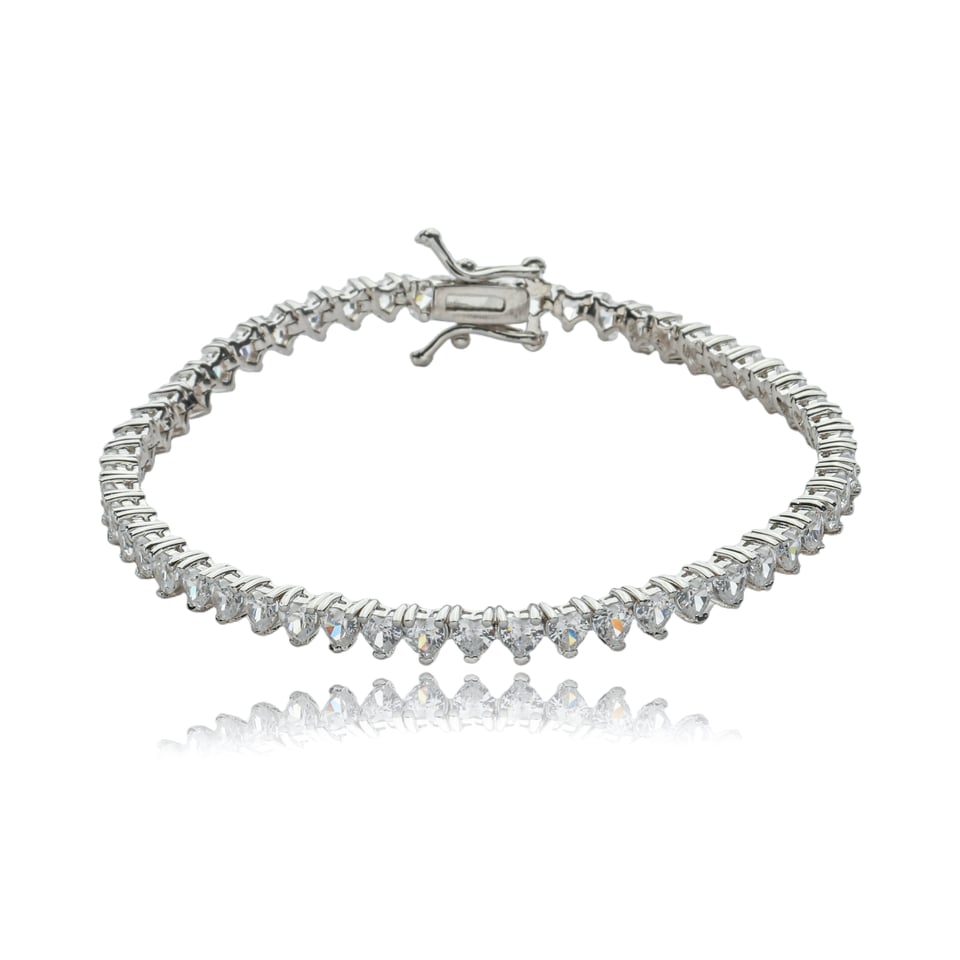 Pulseira banho de ródio com cravação de zircônias na cor branco (cristal).