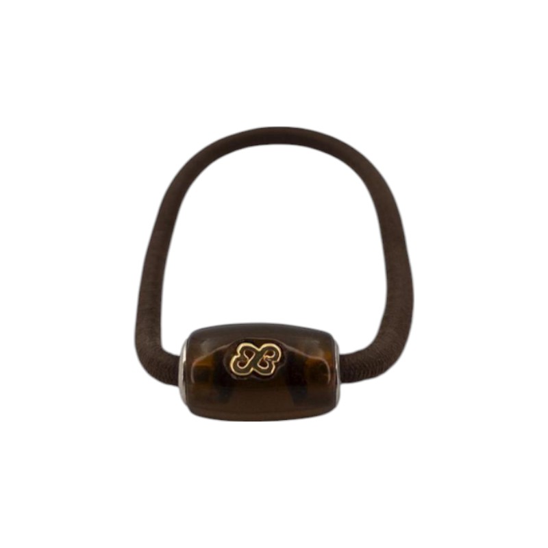 Rabicó com elástico de alta resistência com acetato oval na cor marrom.